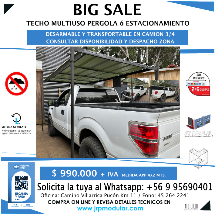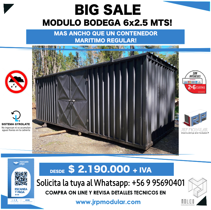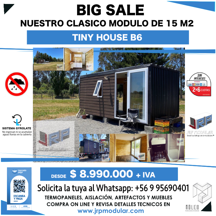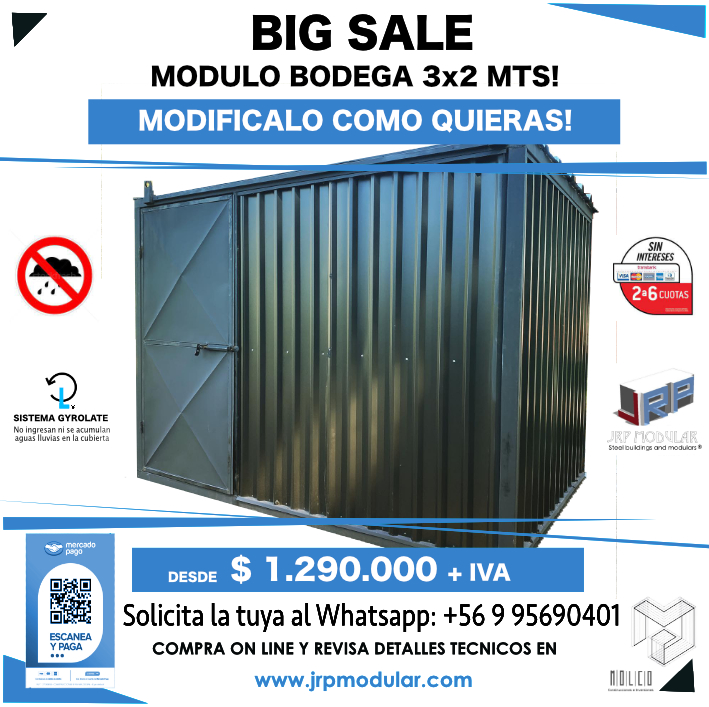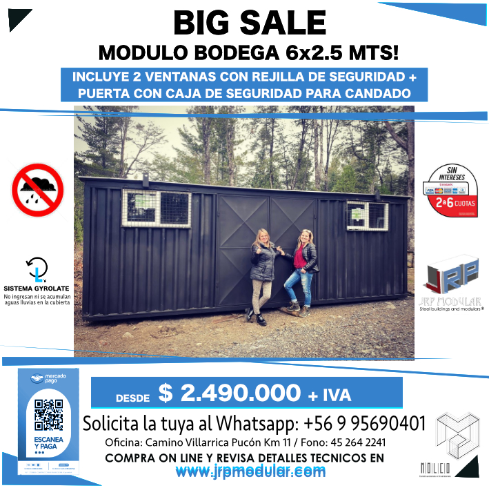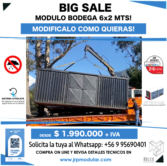 Si necesita un botón o link de pago de otro producto o cotización especial ó parte de esta, puede solicitarlo a info@jrpmodular.com / constructoramolcospa@gmail.com / ó al WhatsApp +56 995690401